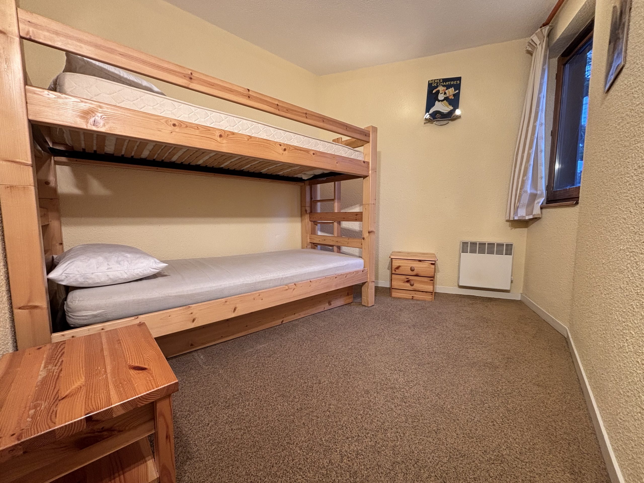 Chambre 1 : 2 lits superposés, 1 lit simple